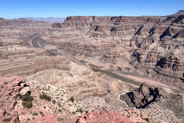À 2h30 de Las Vegas, le Grand Canyon West vous attend avec son panorama à couper le souffle ! Admirez l'immensité vertigineuse de ce canyon mythique, marchez sur la passerelle de verre du célèbre Skywalk et plongez dans la culture vivante de la tribu Hualapai. Une aventure inoubliable aux portes de l'infini.